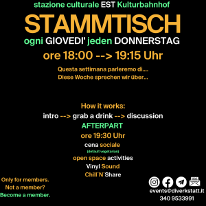 EST è un luogo di incontro, formazione e festa situato nella Casa delle Associazioni di Brunico.