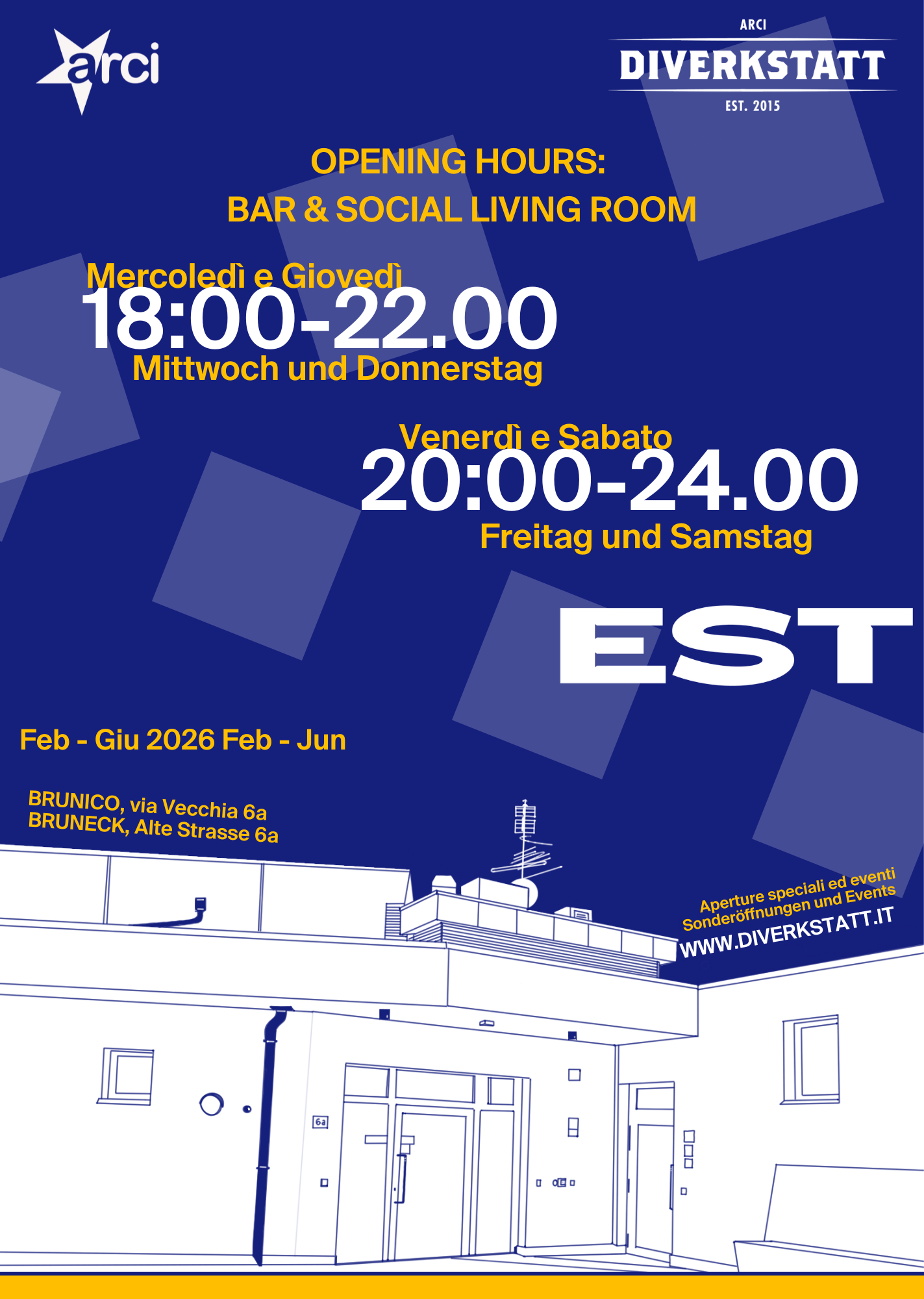 Un luogo basato su partecipazione, volontariato e valori condivisi. L’ingresso è riservato ai soci, con possibilità di tesserarsi in loco. Allo stesso tempo, EST ospita e promuove anche attività ed eventi aperti al pubblico.