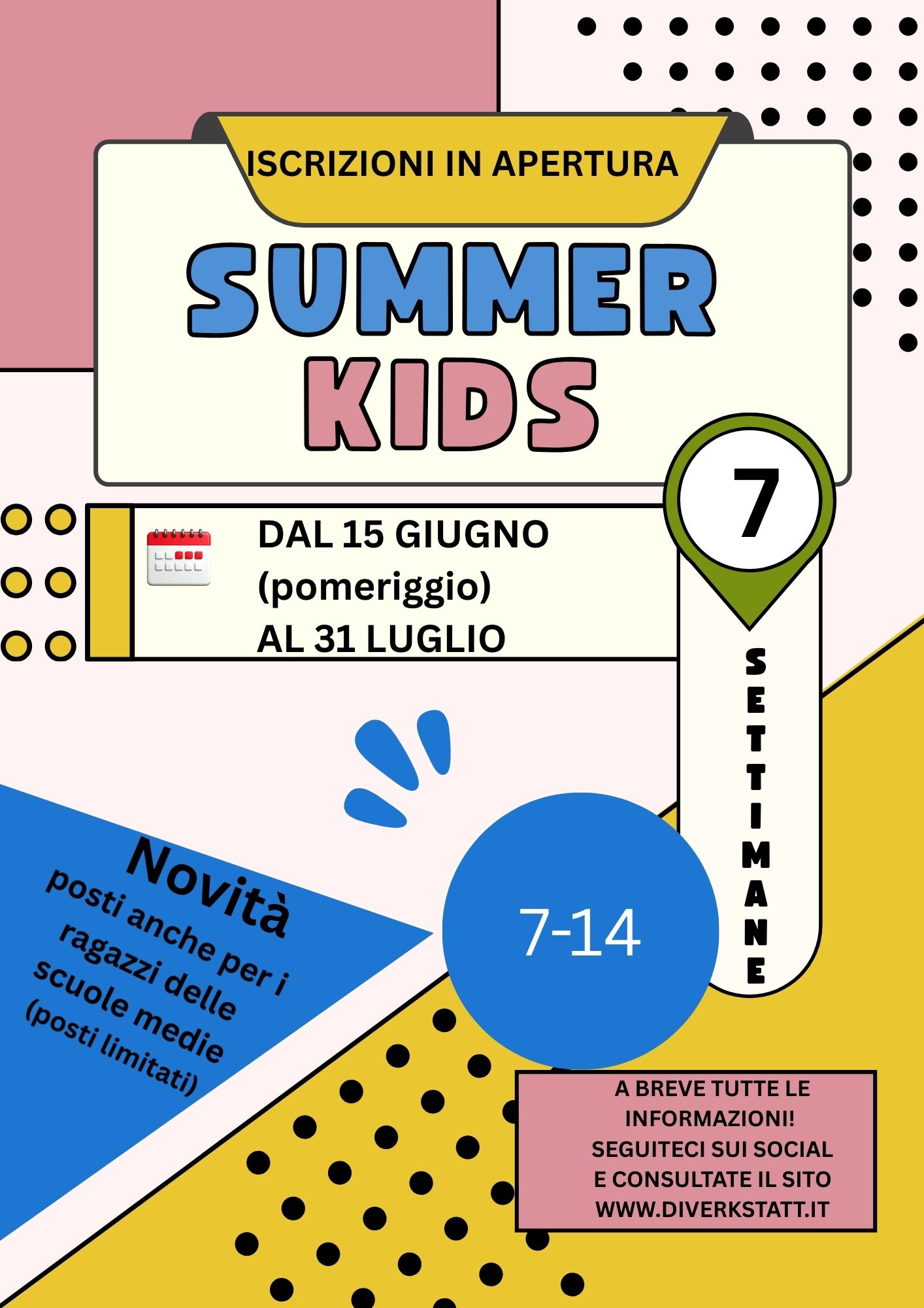 ARCI DIVERKSTATT APS è pronta a tornare con la sesta edizione di SUMMER KIDS, il progetto estivo dedicato a bambini e bambine dai 7 ai 14 anni, per un’estate all’insegna del divertimento, della scoperta e delle nuove amicizie!